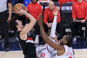 快船本赛季对阵开拓者2-1 赛季倒数第二场双方还要打一场卡位战