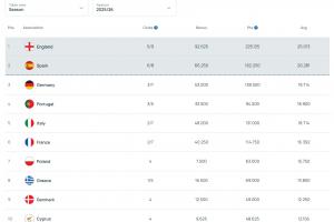 但这个排名并不会影响下赛季意甲球队的欧冠名额,因为在五年累计系数中,意甲依旧排在欧洲第二,仅次于英超,下赛季将继续拥有4个欧冠正赛名额。