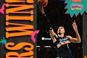 此役过后,马刺战绩更新为62胜19负位列西部第2,赛后,马刺官方晒出62胜海报,文班轻舒猿臂上篮入镜。