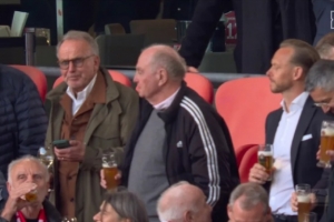 据德国媒体《图片报》报道,拜仁高层在VIP看台区域小酌,庆祝球队卫冕,赫内斯和海纳喝了小麦啤酒,鲁梅尼格则选择喝白葡萄酒。