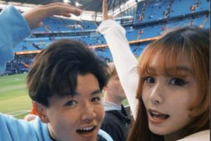 支持曼城徐彬女友晒照,两人现场观看天王山之战曼城vs阿森纳