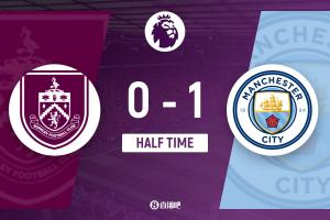 上半场补时2分钟。半场战罢,伯恩利0-1曼城。