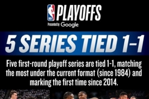 体育资讯4月24日讯 本赛季的季后赛进行得如火如荼,目前首轮系列赛中已经出现了5组对决总比分战至1-1的情况。
