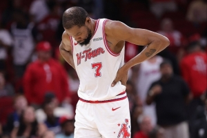 体育资讯4月24日讯 明天上午8点,系列赛G3火箭主场迎战湖人,球队更新伤病报告,杜兰特(左脚踝扭伤)出战成疑。