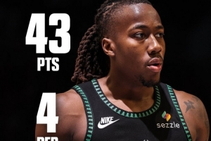 本场比赛,道苏姆出战42分钟,投篮17中13,三分5中5,罚球12中12,砍下43分4篮板2助攻。