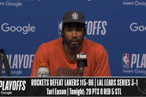 体育资讯4月27日讯 火箭在主场以115-96击败湖人,将系列赛比分扳至1-3。赛后伊森接受了媒体采访,以下为采访全文。