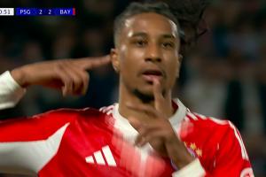 比赛第41分钟,奥利塞禁区前突破后爆射破门,拜仁扳平比分,客场2-2巴黎!