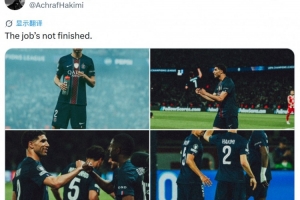 赛后阿什拉夫社媒晒出比赛照片,配文:“任务尚未完成。”