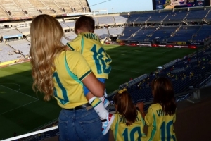维尼修斯此役送出助攻,他的女友弗吉尼亚带着孩子们现场观看了这场比赛,弗吉尼亚社媒晒出照片,配文:“我们准备好了,加油巴西,与我的挚爱们一起现场观看巴西的比赛。”