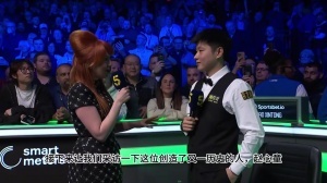 赵心童:谢谢大家。我知道这对我而言是意义非凡的时刻,而且我们都清楚决赛的分量。特鲁姆普是我很欣赏的对手,能和他会师决赛,我真的很开心。嗯……我得说,今晚自己确实足够幸运,最终赢下了比赛。我也知道,裁判的判罚一度引发了一些争议,而且球员们当时还面临着台面湿度的问题,比赛条件非常艰难。所以,我能获胜真的算是运气不错。